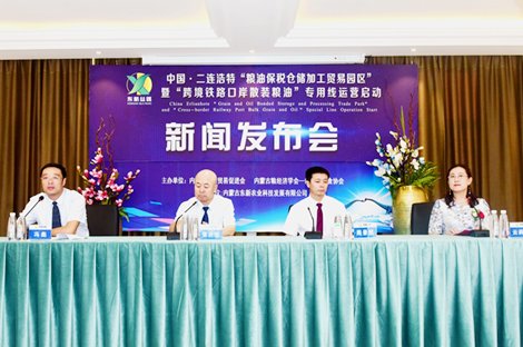 8月18日下午,由内蒙古民族贸易促进会、内蒙古粮食经济学会、内蒙古粮食协会共同主办,由内蒙古东新农业科技发展有限公司承办的中国·二连浩特“粮油保税仓储加工贸易园区”暨“跨境铁路口岸散装粮油专运线”启动新闻发布会在二连浩特市召开。