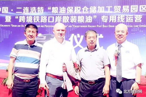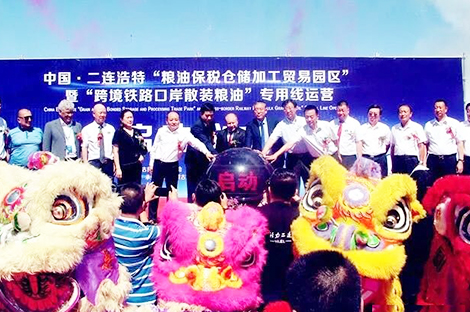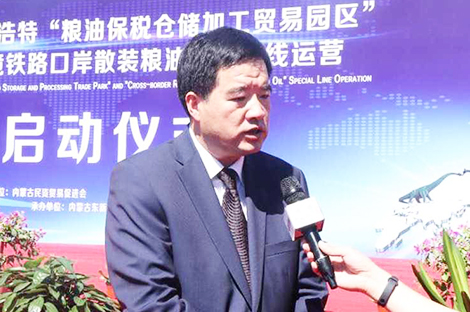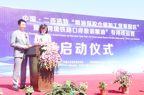 仪式结束后,二连浩特市长刘志平在接受记者采访时表示,“粮油保税仓储加工贸易园区”和“跨境铁路口岸散装粮油”专运线实现了中俄蒙第一产业发展的深度融合,以此为契机,二连浩特市产业经济将得到质的提升和跨越式发展,未来的二连浩特市将成为带动全区对外贸易发展的排头兵。